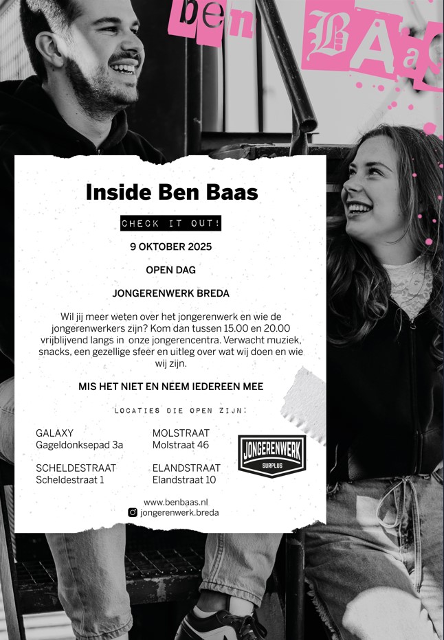 Tijdens de open dag worden vier locaties van Jongerenwerk Surplus opengesteld voor het publiek. Een unieke kans om van dichtbij te zien wat jongerenwerk in Breda betekent en hoe het bijdraagt aan sterke, veerkrachtige buurten. Alle netwerkpartners, buurtbewoners, ouders en jongeren zijn van harte welkom!