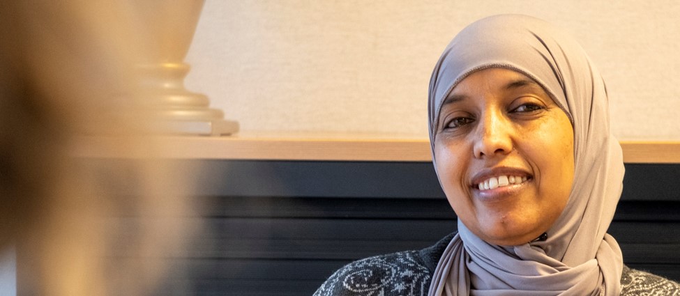 “Ik had het heel druk met zorgen voor het huis, de kinderen en de studie. Ik ben heel actief aan de slag gegaan en mijn Nederlandse taal ging snel vooruit. Femke vroeg mij om te komen helpen, en te gaan tolken als vrijwilliger. Ik twijfelde, ik wist niet of ik dat wel kon. Nu tolk ik bijna elke week, zowel Arabisch als Tigrigna. Ik vind het heel leuk om te doen. De mensen die ik help hebben stress. Als je uit een ander land komt is alles moeilijk. De taal, contact met de mensen, het land. Als je naar de dokter gaat begrijpt hij je niet. Je twijfelt overal over, je bent niet zelf in controle. Als tolk kan ik daar bij helpen. Mensen voelen zich begrepen door mij. Zo doe ik iets voor hen. Ik zeg hen ook altijd dat ze het gewoon moeten proberen. Als je probeert en probeert, dan komt het altijd goed.”