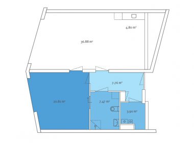 De royale woonkamer van ca. 41,5 m² met open keuken vormt een heerlijke leefruimte waar u comfortabel kunt wonen en gasten kunt ontvangen. De ruime slaapkamer van ca. 20,5 m² biedt volop plaats voor een groot bed en kastruimte. Vanuit de slaapkamer bereikt u via een schuifdeur de badkamer, die is uitgerust met een inloopdouche, wastafel en toilet.