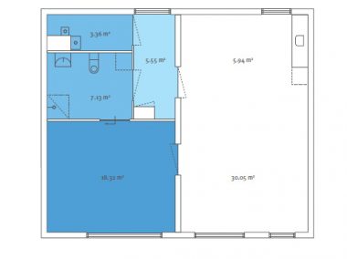 De royale woonkamer van ca. 36 m² met open keuken vormt een lichte en prettige leefruimte waar u heerlijk kunt wonen en ontspannen. De ruime slaapkamer van ca. 18 m² biedt volop plaats voor een comfortabel slaapgedeelte en extra kastruimte. Vanuit de slaapkamer bereikt u via een schuifdeur de badkamer, die is uitgerust met een inloopdouche, wastafel en toilet.